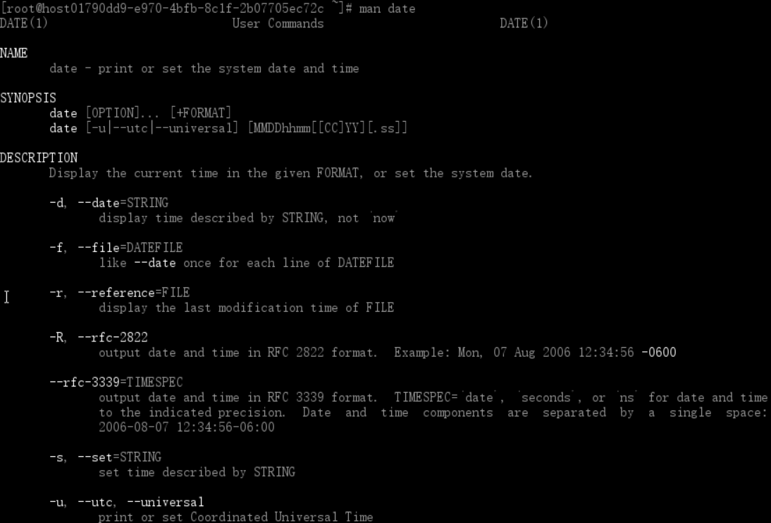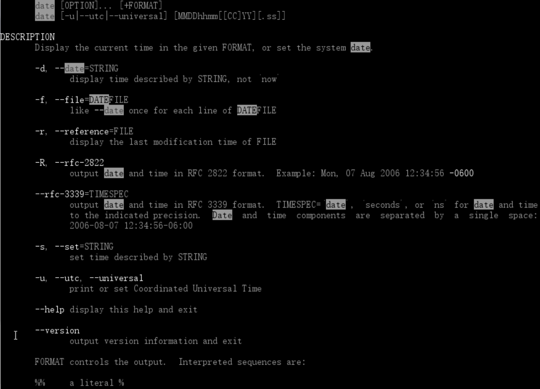 咦~不知道怎么使用date这条命令?没关系,就是找男人(man) 呀!喔!不是啦!这个man是manual(操作说明)的简写啦!只要输入”man date” 命令,就能清楚的显示date的详细说明和用法了。