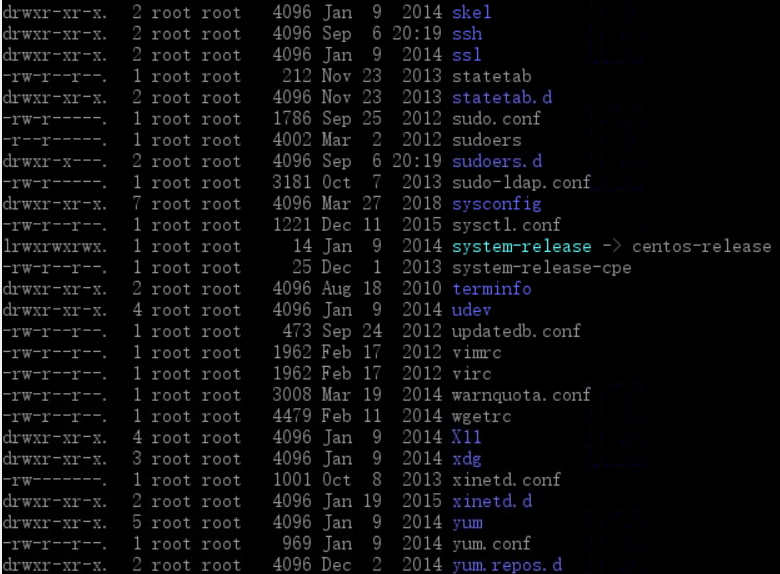 接下来就来感受下:cd /etc 这里面的文件多~