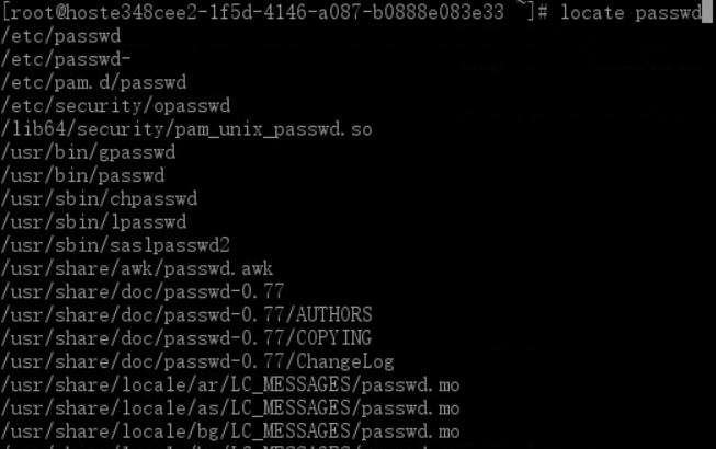 搜索所有有关passwd的档案,出错了。为什么呢?按照提示,说没有数据库,刚刚我们说locate是基于数据库的,没有数据库怎么行呢?我们执行updatedb 修复一下,再次搜索: