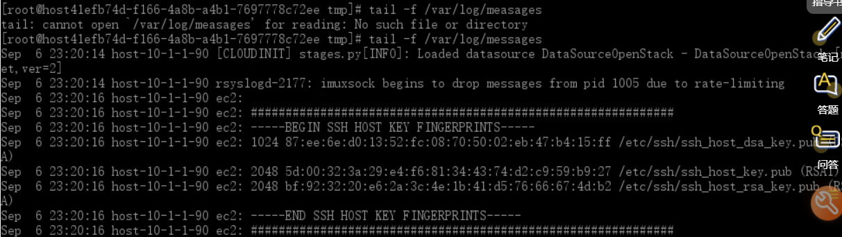 解释:-f 检测文档,直到按下 Ctrl+C 才会退出,可以用来监测日志的写入。