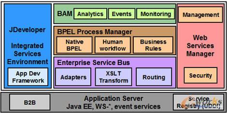 Oracle的SOA技术产品叫SOA套件(Oracle SOA Suite),Oracle宣称,其SOA套件是一套用于创建、部署和管理SOA的全面的、热插拔式的软件组件,由其融合中间件的服务导向架构组件构成(Fusion Architecture)。
