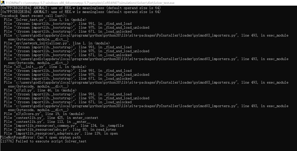 这时启动exe,就会在cmd窗口里得到如下报错: