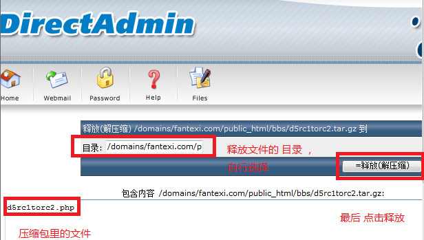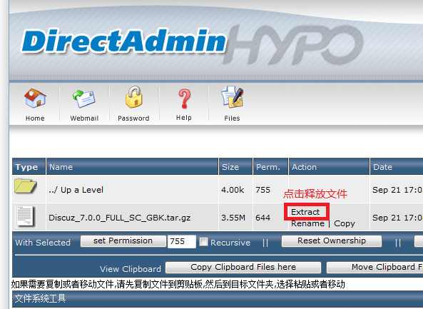 Directadmin控制面板,支持您自主解压上传到空间的压缩文件,支持zip和tar.gz(使用7-ZIP软件)格式。