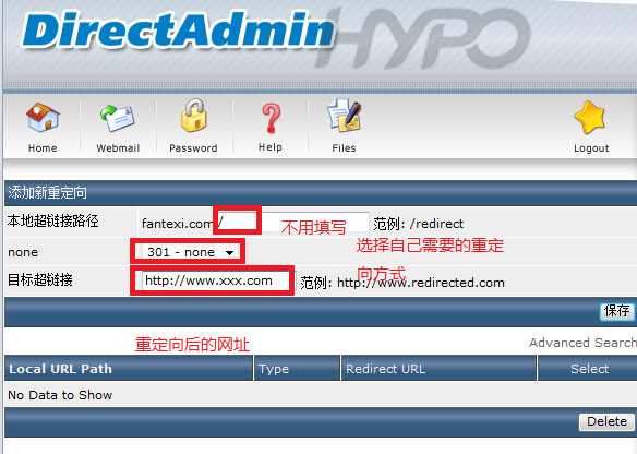 如要把 fantexi.com 重定向到http://www.xxx.com,可按照下图完成 ( 重定向方式 按照自己需求的进行选择)