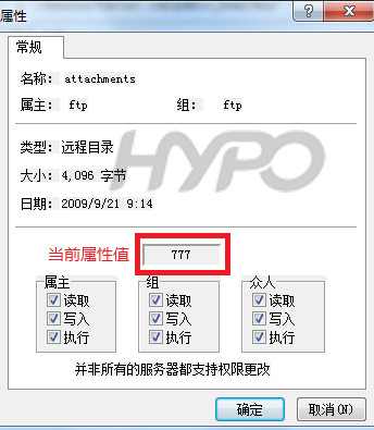 进入FTP,在需要修改的文件名右击-属性,读写执行全部选上即可。