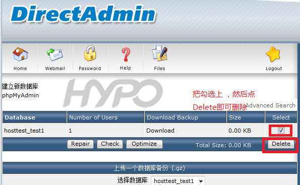 要删除数据库的话,只需在要删除的数据库后打上勾,然后点Delete