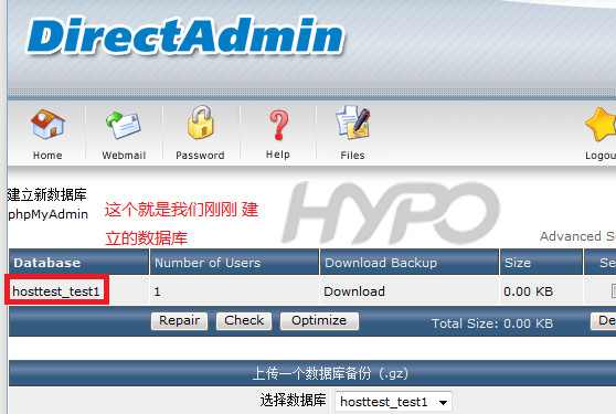建立好数据库后 ,控制面板首页—》MySQL管理——即可看到刚刚建立好的数据库