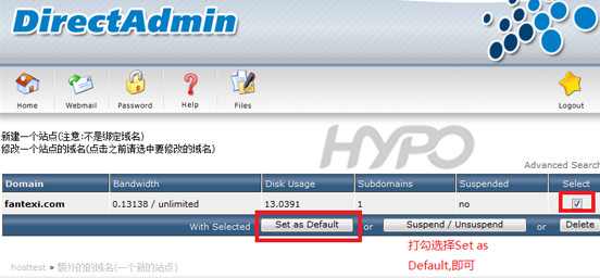 2、选择您想要指定快捷路径的网站,点击“Set as Default”按钮,即可设定此网站为FTP根目录下public_html目录的快捷路径;