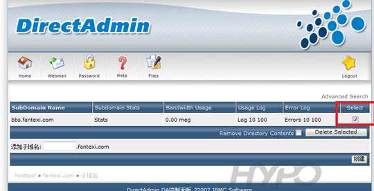 如果要删除的话,进入子域名管理,把√选上 ,按Delete即可删除