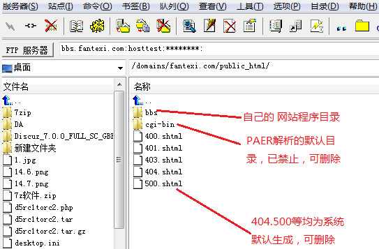 注意:除了public_html目录里的文件可以删除外,FTP根目录下的其他文件以及所有默认目录请不要删除,否则将会影响您的正常使用!