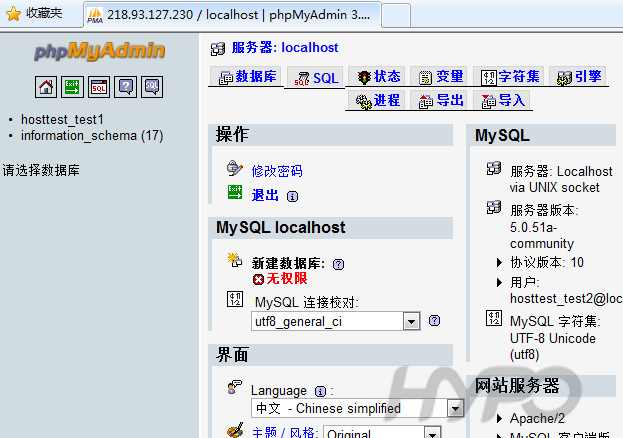 DA的PhpMyAdmin的登录地址为:http://serverIP/phpmyadmin/