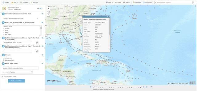 通过Detect Incident工具来识别压力超过1000 mbar的飓风