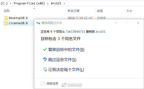 1.3.1 将破解文件“ESRI_ArcGIS_Desktop_10.6_Crack_DanPack”解压,并分别覆盖到安装路径下:
