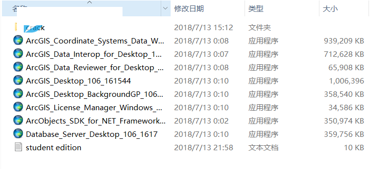 百度一下相关软件包,进行下载。对于ArcGIS Desktop 软件安装包,下载解压后如下图所示。