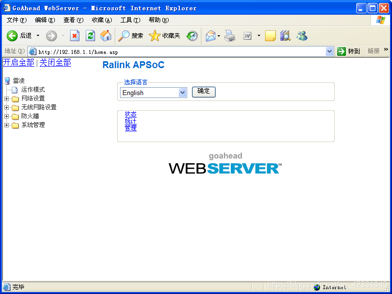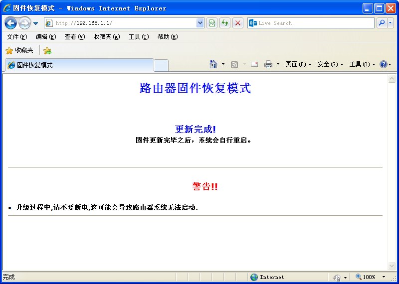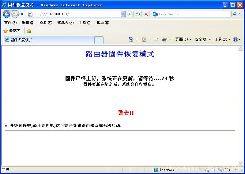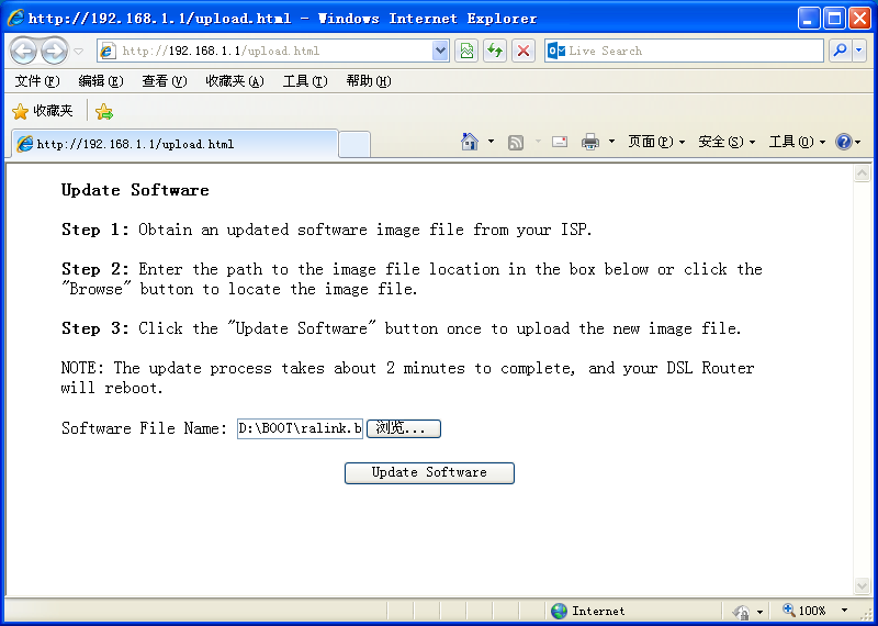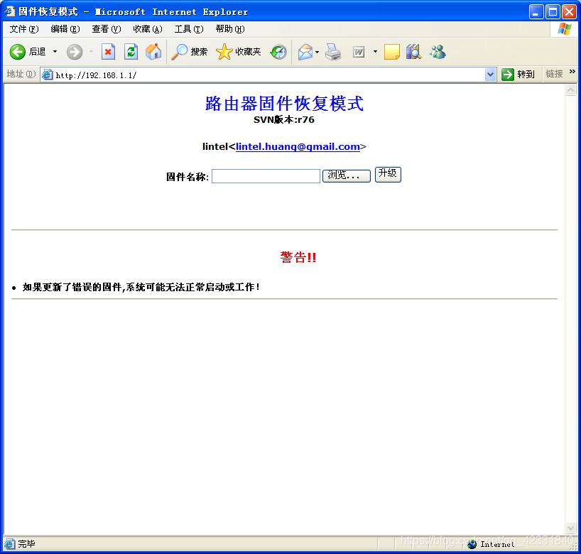 此时可以在浏览器输入192.168.1.1进行固件更新了。