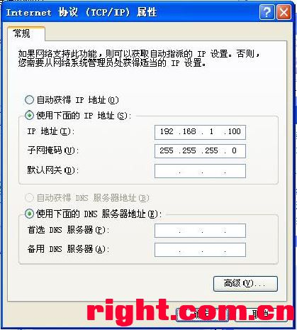 把电脑的网卡地址改成静态IP地址(笔者设置为192.168.1.100)