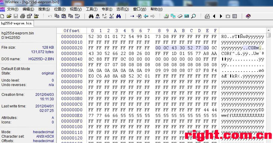 用WinHex打开eeprom.bin,定位到0x00000020-8,如下图: