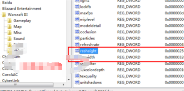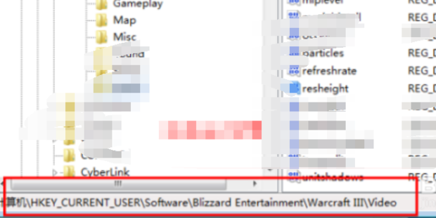 打开注册表编辑器菜单之后,依次找到HKEY_CURRENT_USER\ SOFTWARE \ BLIZZARD ENTERTAIMENT\WARCRAFTIII\VEDIO(这一项就是魔兽争霸软件注册表的视频显示设置了)