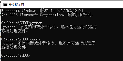 但是Python和Conda环境并没有添加到Path环境中,导致在Windows自带的普通CMD窗口中都无法加载。