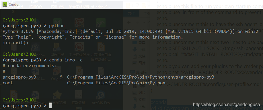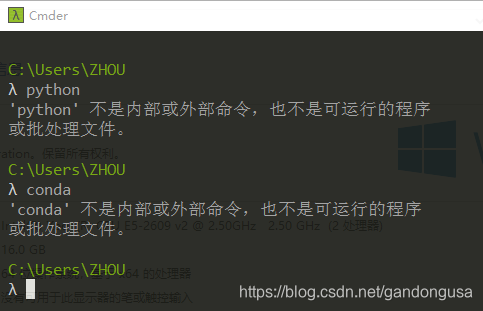 而且Cmder启动的时候不显示conda当前python环境,需要进一步处理。