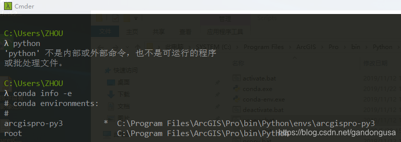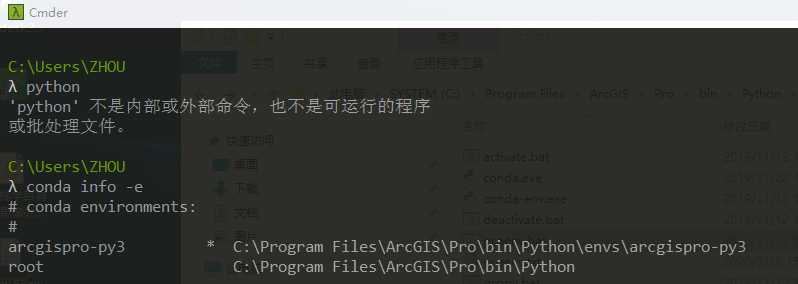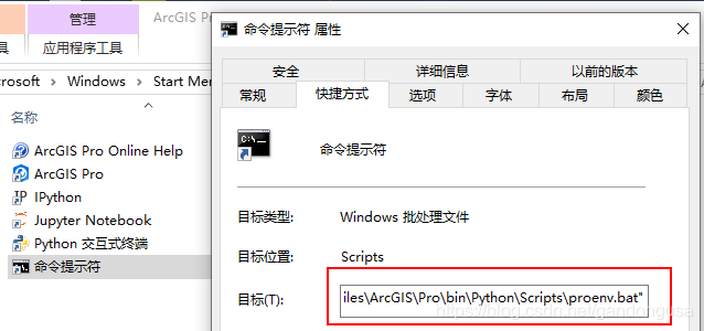 “命令提示符”:"C:\Program Files\ArcGIS\Pro\bin\Python\Scripts\proenv.bat"
