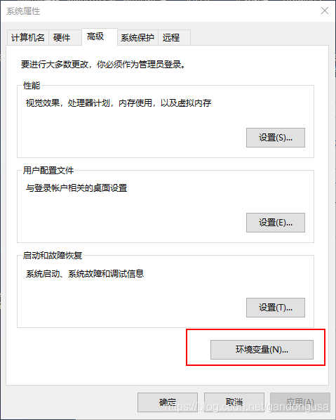 在“系统属性”中选择“高级”标签下的“环境变量”