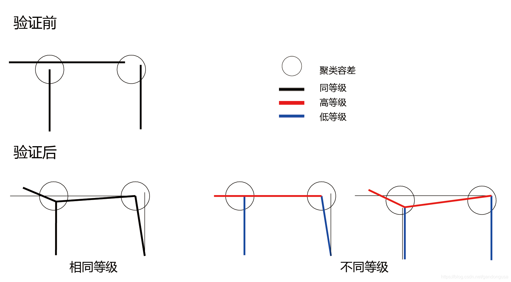 在地理数据库拓扑中为要素类指定的坐标精度等级控制着要素折点在验证过程中的移动。等级有助于控制折点在处于彼此拓扑容差范围内时的移动方式。处于彼此拓扑容差范围内的折点被认为位置相同且定位于同一点(为处于拓扑容差范围内的坐标指定相同坐标值)。