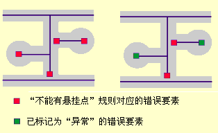 | 不能有伪结点 | 要求线在每个端点处至少连接两条其他线。连接到一条其他线(或到其自身)的线被认为是包含了伪结点。在线要素必须形成闭合环时使用此规则,例如由这些线要素定义面的边界,或逻辑上要求线要素必须在每个端点连接两条其他线要素的情况。河流网络中的线段就是如此,但需要将一级河流的源头标记为异常。 |