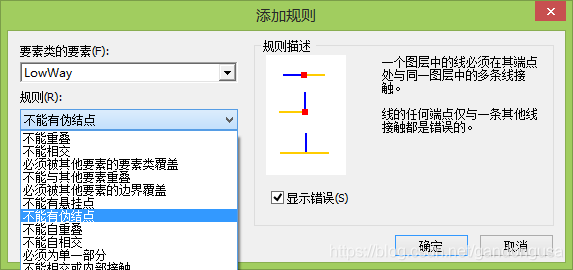 规则类型:Must Not Have Dangles (Line),(规则每次只能添加一条,当有多种规则时需要反复多次输入)