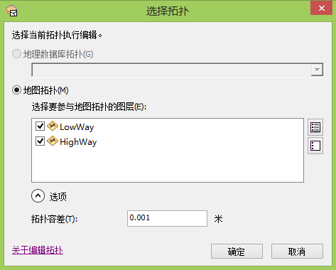 | 选择拓扑 | 选择创建地图拓扑还是选择地理数据库拓扑 |