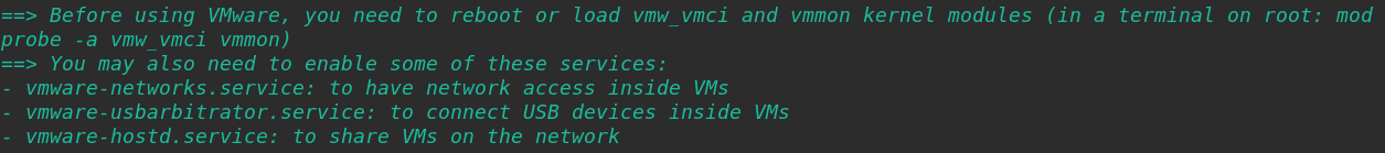 sudo systemctl enable vmware-networks.service vmware-usbarbitrator.service vmware-hostd.service