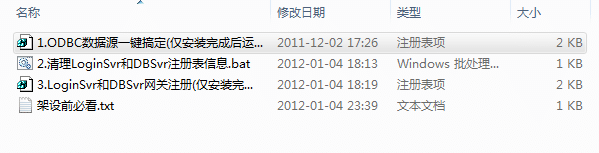 第三步运行本文件夹内LoginSvr和DBSvr网关注册(仅安装完成后运行一次).reg文件