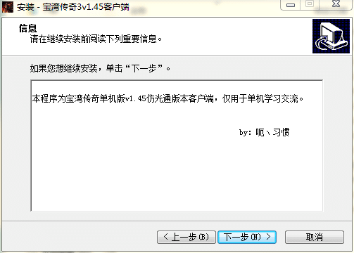 四.大功告成了,安装宝湾传奇3v1.45客户端。