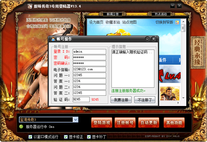 全明文脚本无限制,属性不破255,默认GM账号admin 密码123456 GM名为游戏藏宝湾可以在D:mud3Enviradminlist.txt里添加 格式为 * 游戏名字。
