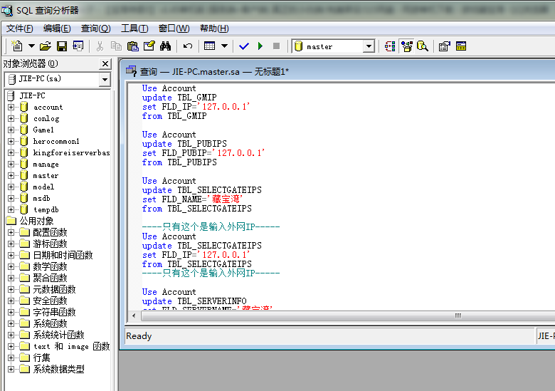 打开sql查询分析器,在文本框输入以下代码,按F5执行操作。