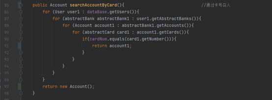 得到了卡号和密码,我希望得到账户,以读取信息或者进行修改,那么这是对应的方法searchAccountBycard():