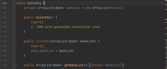 好的,那么自然是从上往下进行代码编写,首先是银联类: