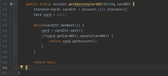 那么,拥有卡号如何得到对应的账户呢?我们聚焦Account()类的一个静态方法getAmountbyCardNO(String cardNo):