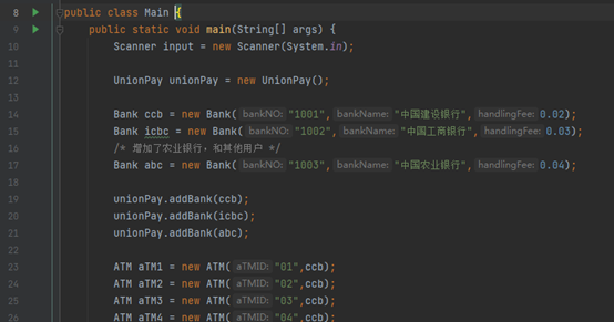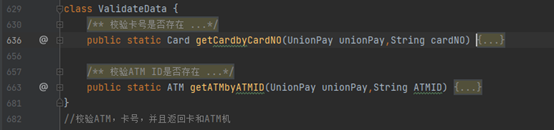 是一个静态方法,得到了银联就等于得到所有的数据,自然可以遍历得到card。另外一个得到ATM机的方法的细节类似。