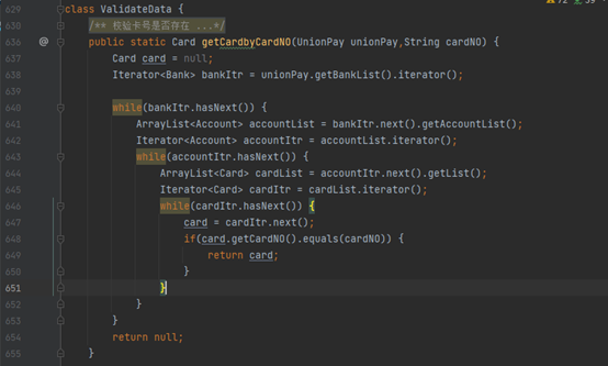 这里我是已经写昏了头从147-158的循环根本就是重复劳动,因为我已经有可以从卡号得到卡的方法了,但是我依旧写了循环。