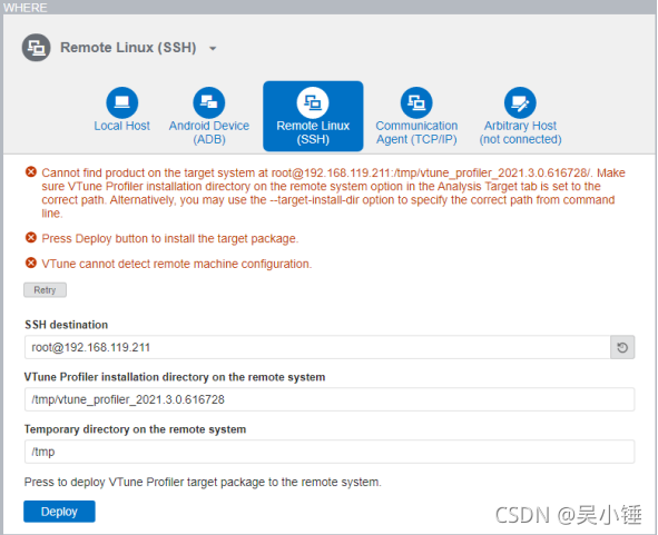 选择Remote Linux,通过SSH远程连接,指定服务器IP,点击Deploy,一键部署服务器端相关配置。