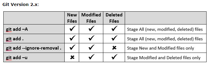 - git add . 提交新文件(new)和被修改(modified)文件,不包括被删除(deleted)文件