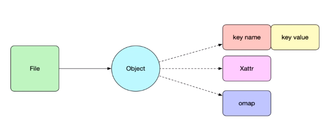 - 应用对象大小小于等于分块大小:用户上传的一个对象只对应一个 RADOS 对象,该 RADOS 对象以应用对象名称命名,应用对象元数据也保存在该 RADOS 对象的扩展属性中。