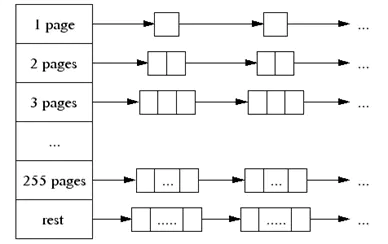 分配k个页面:首先在地k个空闲内存链表上查找,如果该链表为空,那么就在下一个空闲内存链表中查找,以此类推,最终将在最后空闲内存链表中查找。如果该操作也失败,那么则向系统申请内存(笔者注:使用sbrk、mmap等向OS申请内存)。