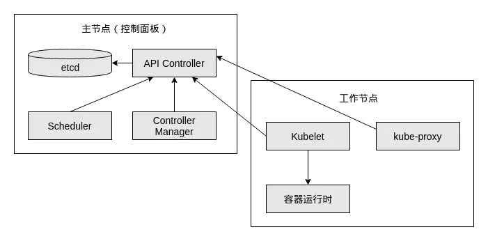 - 主节点,承载 k8s 的控制和管理整个集群系统的控制面板