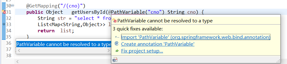 点击PathVariable,在弹出的窗口,点击import PathVariable…… 插入对应的包即可