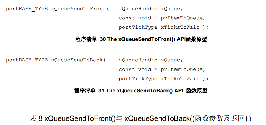 但 切 记 不 要 在 中 断 服 务 例 程 中 调 用 xQueueSendToFront() 或xQueueSendToBack()。