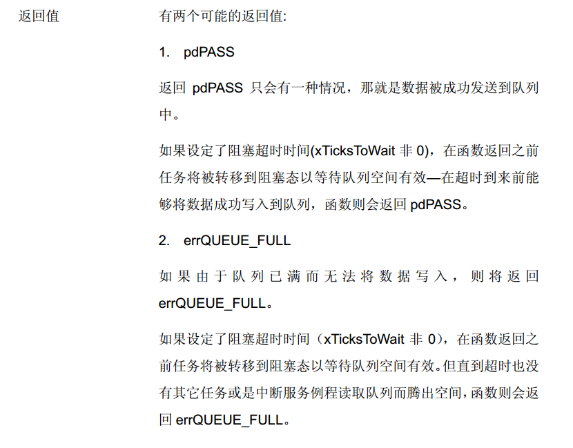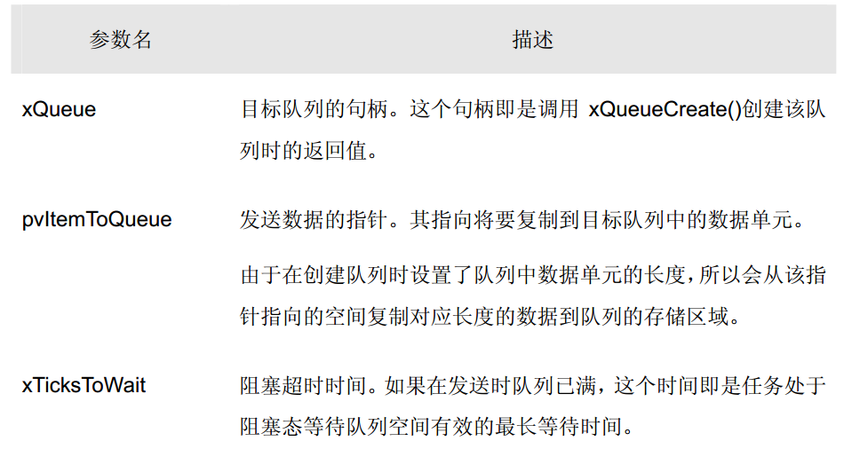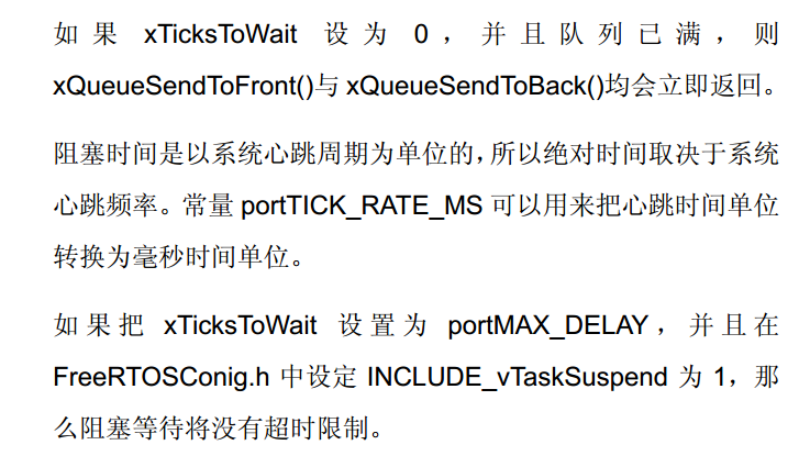 队列已满时,任务进入阻塞态以等待队列空间有效的最长时间。