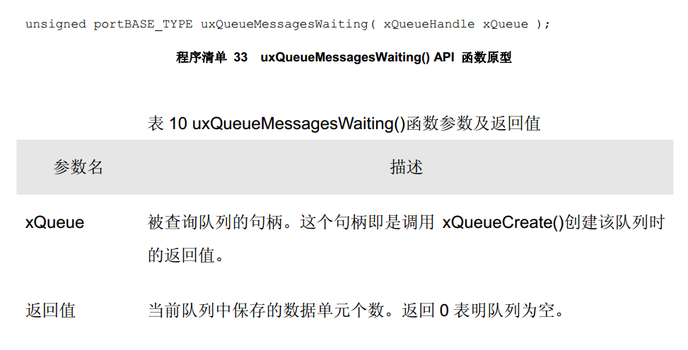 uxQueueMessagesWaiting()用于查询队列中当前有效数据单元个数。