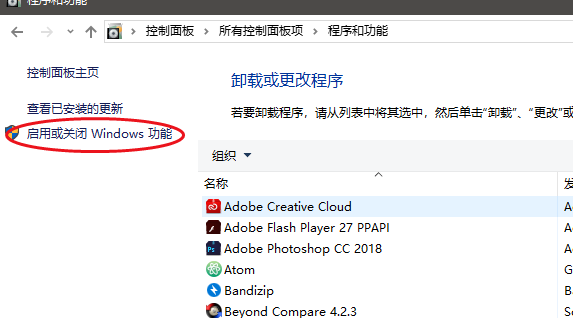 需要到 控制面板\所有控制面板项\程序和功能 中选择 启用或者关闭Windows功能